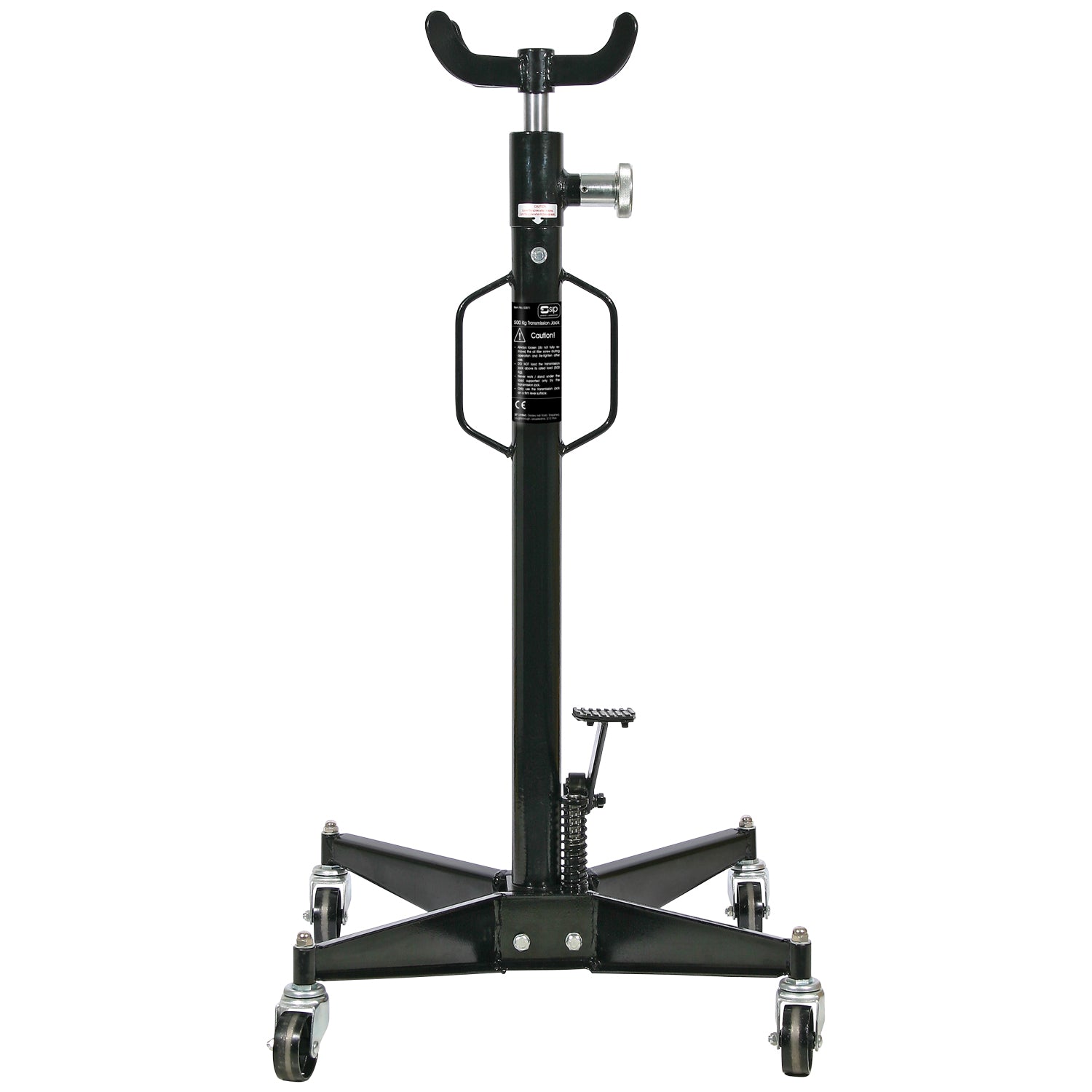 The SIP 500kg Transmission Jack provides safe and adjustable lifting through a robust design with a large footprint to distribute weight evenly and provide secure support, and 4 swivel castors for simple positioning and mobility, plus an oversized foot pedal.